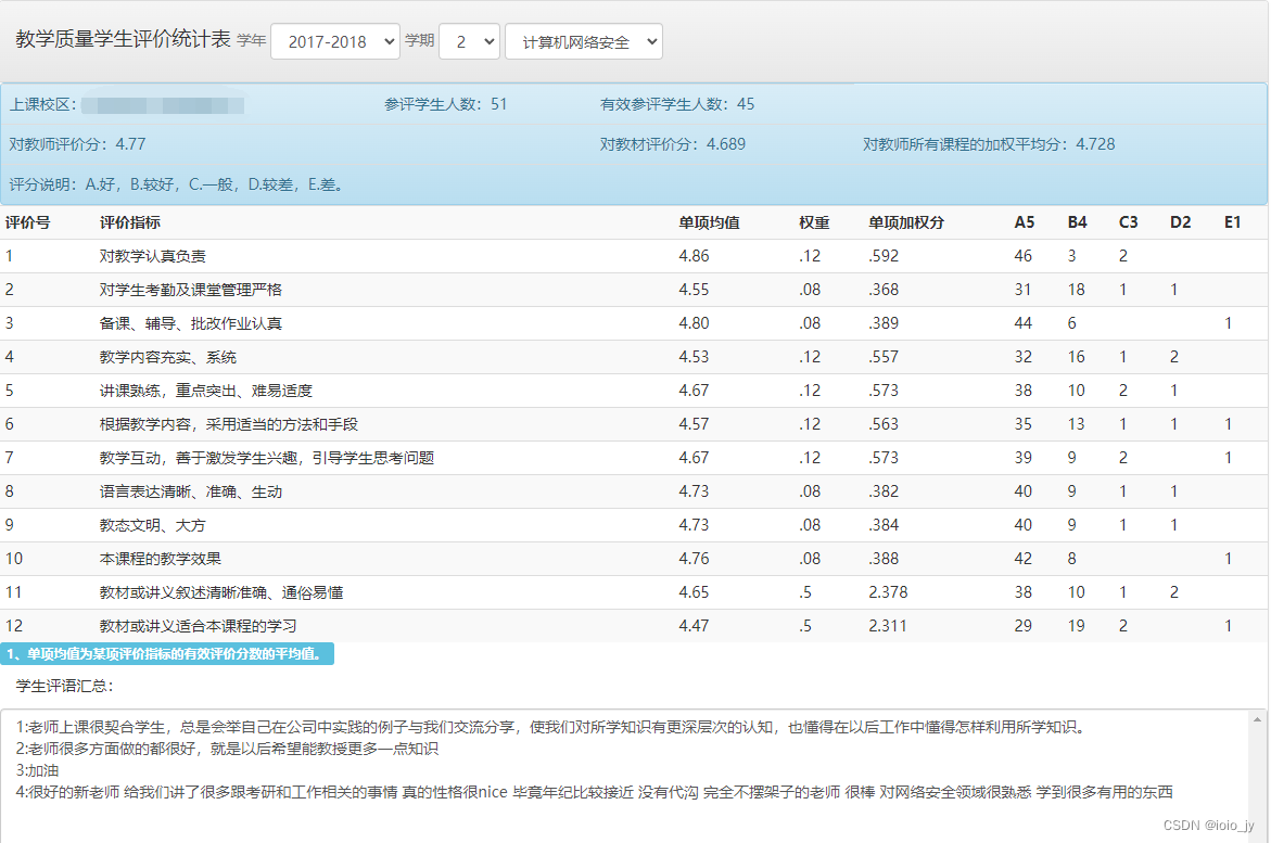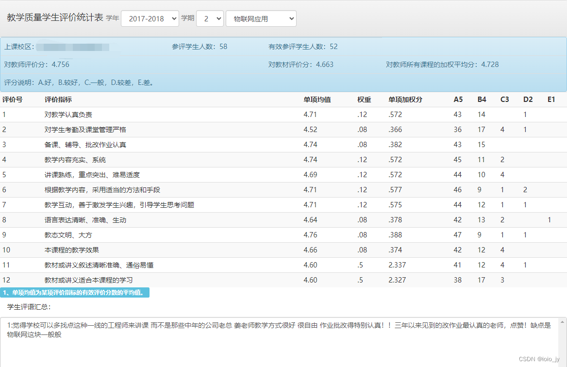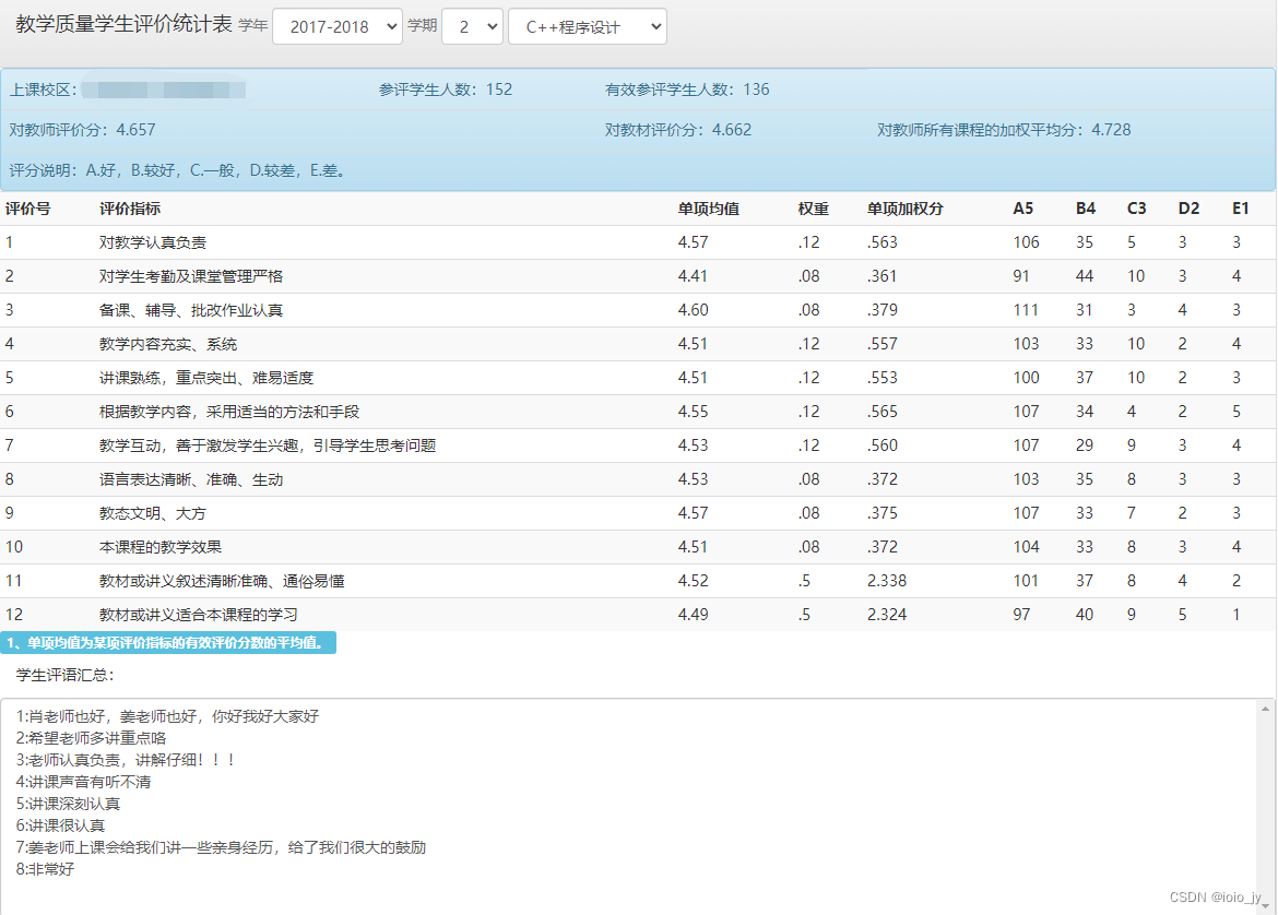 在每个学期结束的时候,学校教务处都会进行评教活动,而正如前文所说,我第一学期教的这几门课的综合评教分数是4.728,我自我感觉还是挺高的,可是并没有和其他老师对比过,学院也不会特意对所有老师的评教分数进行排名,因此我也就不清楚自己的分数处于学院的什么位置。