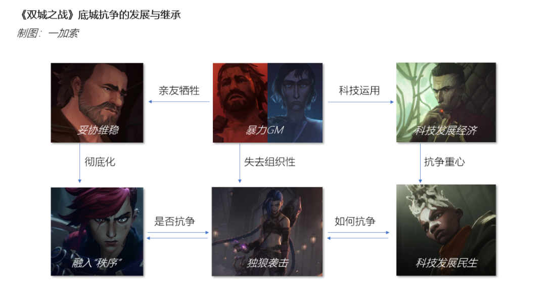 上一代的范德、希尔科,到这一代的金克丝、艾克、蔚,他们因不和的政见与不同的方案而相互争斗,大打出手,形同陌路,但这些,其实只是一个历史叙事的轮回。
